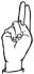 На ћирилици написано РАДНА ЧЕНЕДИЋ састоји се из 12 слова [?]. Исписано ћириличном једноручном азбуком за глувонеме: